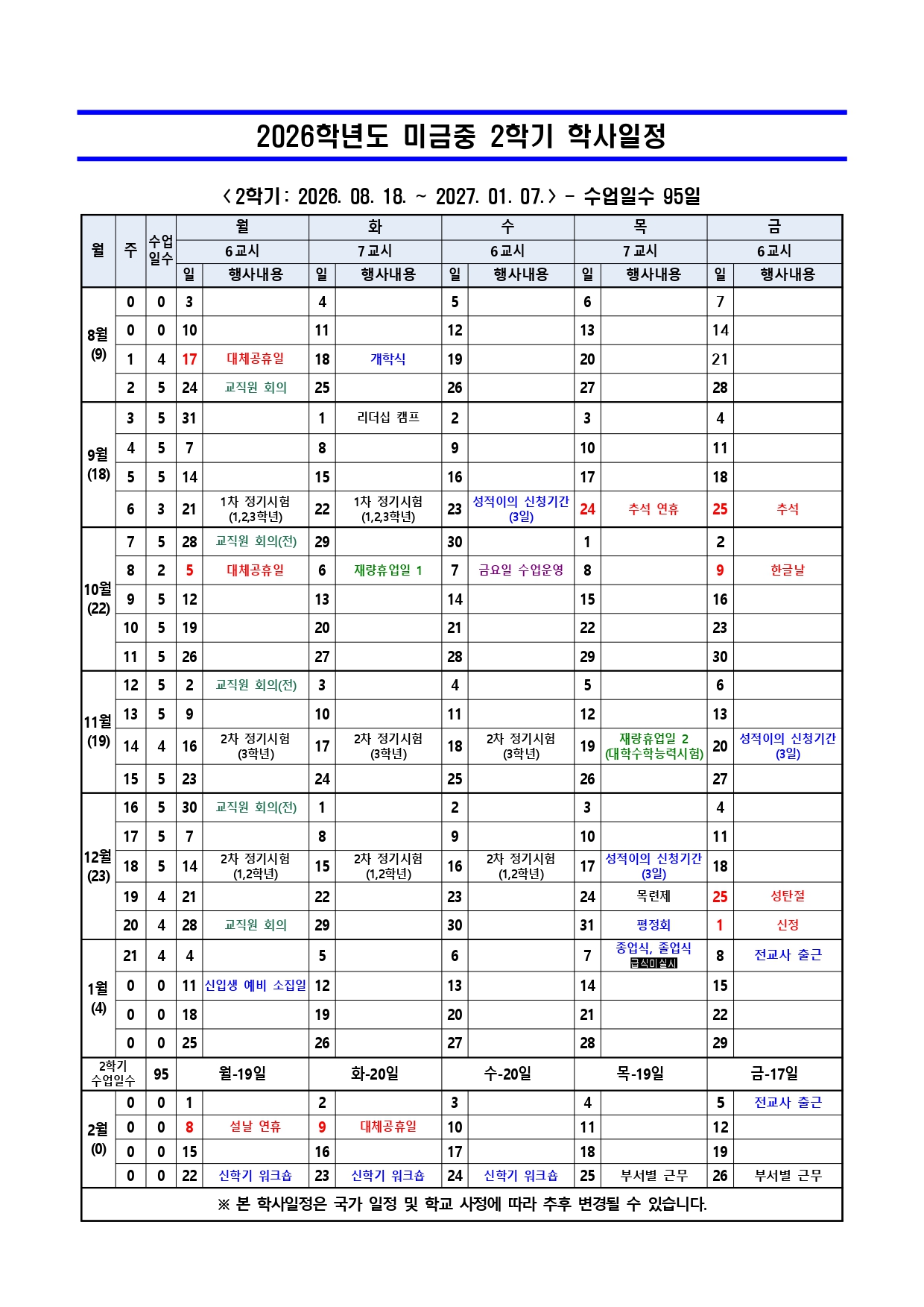 연간학사일정